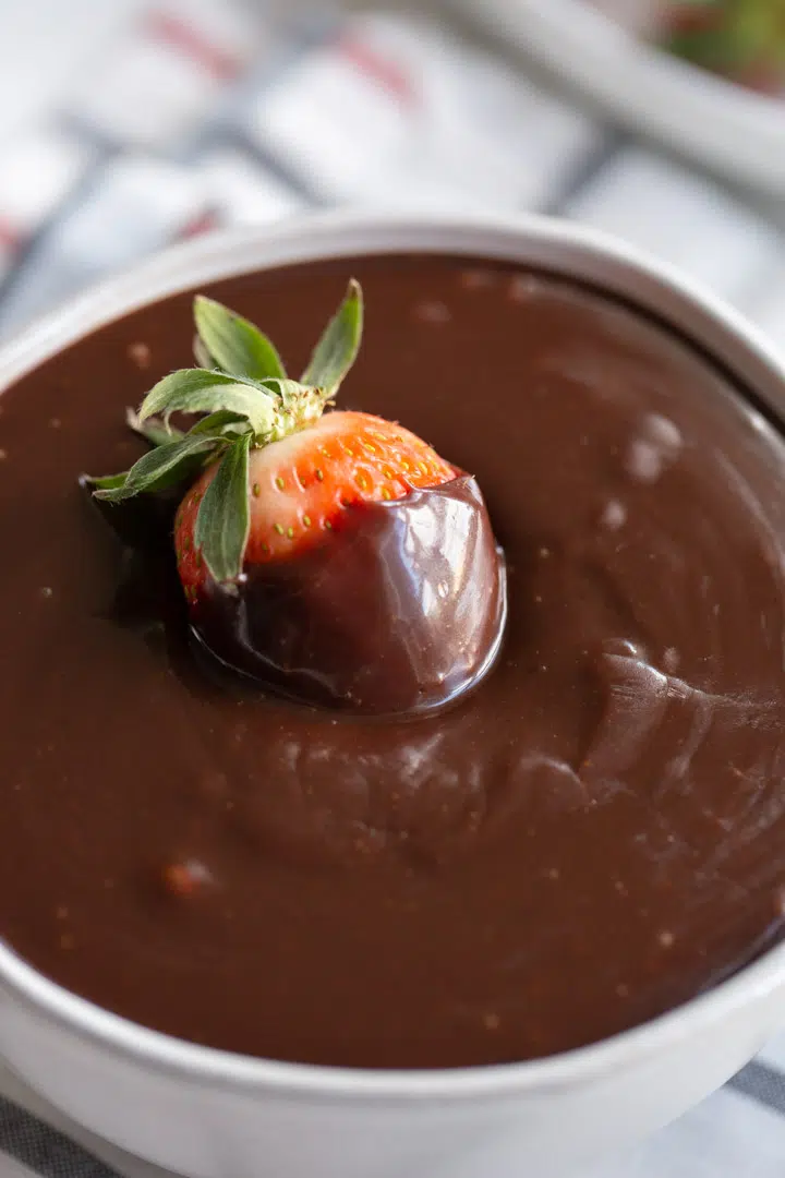 - Place the chocolate chips in a blender or food processor and pour the hot butter mixture over them. Pulse 5-6 times or until the sauce is silky smooth.