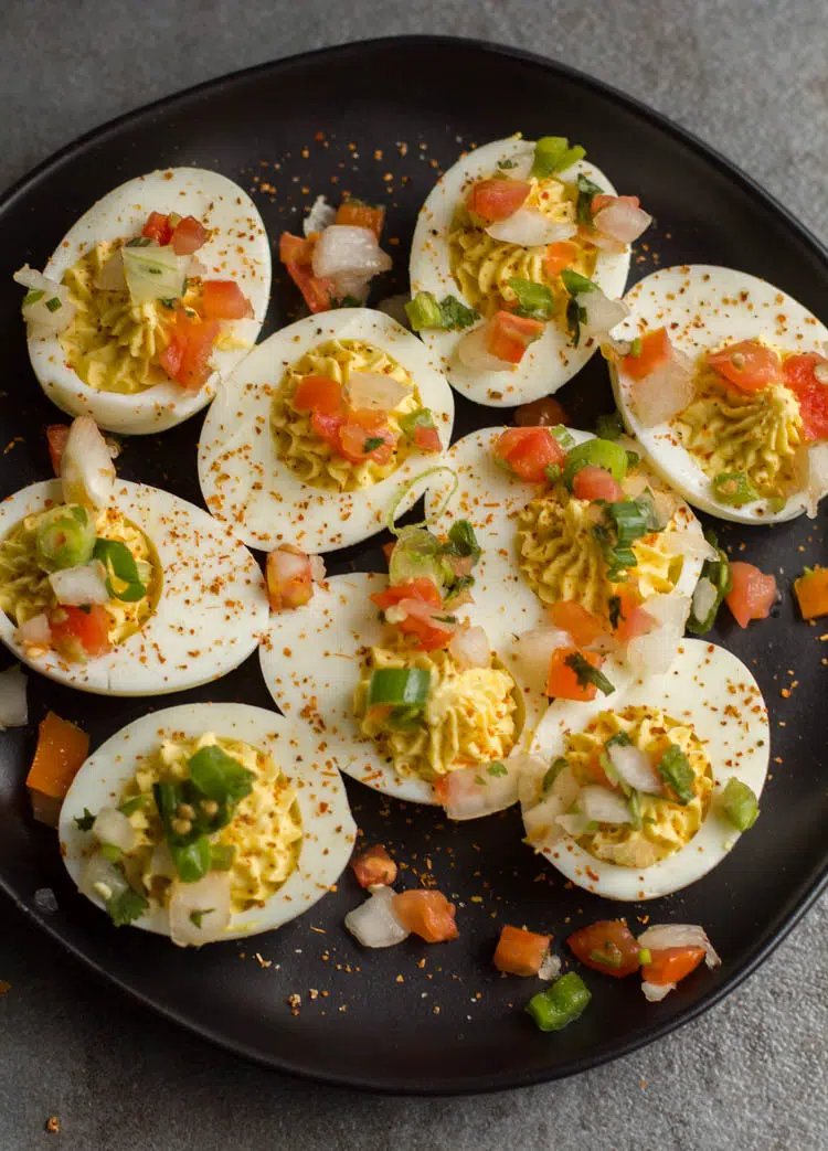 - Arrange your egg whites on a serving dish and pipe** or fill them with the yolk mixture.